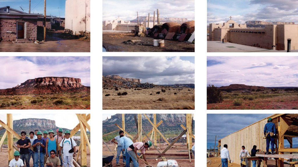 The Zuni Eagle Sanctuary is a place of practical purpose and spiritual presence. Situated on the Pueblo of Zuni in northwestern New Mexico, it is the centerpieces of the natural resources compound, located just off the single paved road that connects the Middle Village to the outlying Black Rock area housing. It is a Place marked by community involvement in the design and construction process, reliance on local materials quarried and milled from Zuni lands, and the reintroduction of traditional building techniques for construction. Originally designed to hold birds and their caretakers, the site has expanded in significance as people from Zuni and elsewhere discover the power of the space inhabited by the eagle. Project History Eagle feathers play a central role in the ritual observances of the Zuni tribe. In the past, tribal members were free to keep eagles, but today only eagles unsuited to the wild may be held in captivity, their condition monitored by the federal government. Rather than continue to apply to the government for eagle feathers, the Zuni have constructed and aviary to house these injured eagles. As birds molt, their feathers are collected to distribute to the tribe.