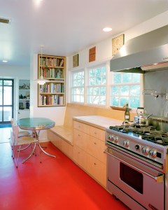The original house was built in 1949 and was a modest two-bedroom frame structure on a generous site. The owners wanted to enlarge the house to accommodate the needs of the family. The site design strategy includes the reorientation of the main entry, construction of a masonry site wall along the north edge and creation of an exterior courtyard by the organization of the program into an “L” shape. Each program section is expressed materially. The rectangular masonry block of the studio becomes a site element and the new bedrooms and reading room, clad in corrugated metal, emerge from the block wall. The heart of the interior space is a large family activity hall on the lower level with private rooms for sleeping overlooking the space. The Great Hall is multilayered in plan and section. In the section, the site topography continues inside the large space and the Hall is itself a terraced landscape of interrelated private and public spaces.